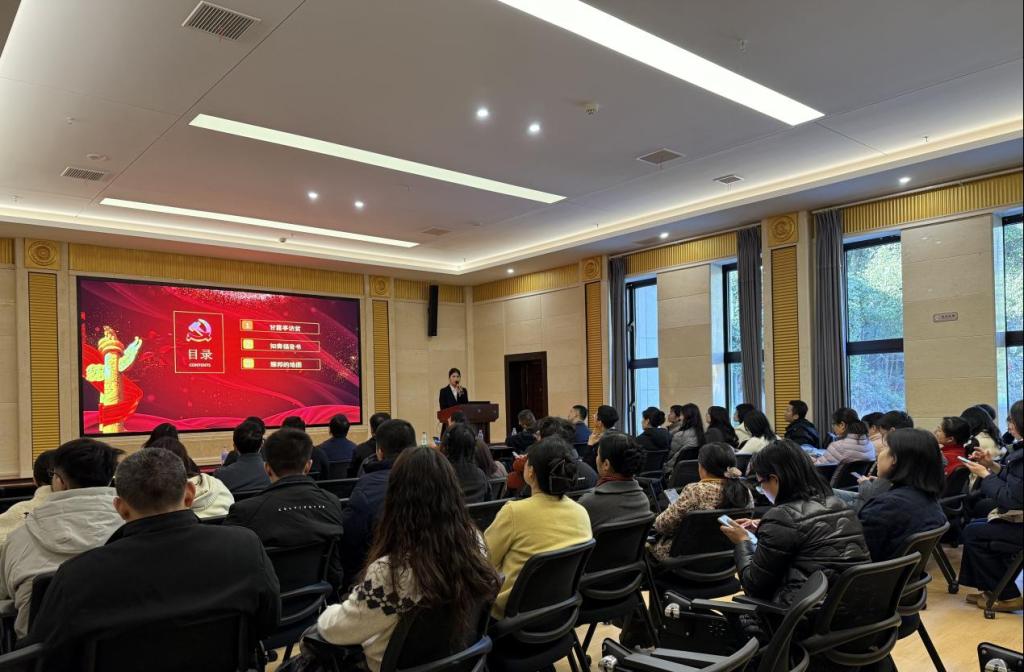 实地寻访结束后,专题党课《胡耀邦的为民情怀》在红色教育基地报告厅开讲。活动由中医学院党委书记钟艳同志主持,胡耀邦同志纪念馆授课讲师陈琼同志主讲。课程以胡耀邦同志改写的对联“心在人民原无论大事小事,利归天下何必争多得少得”为切入点,生动诠释了伟人“以人民为中心”的执政理念与赤子情怀。授课老师通过大量鲜活史料,娓娓道来胡耀邦同志深入基层调研、心系群众冷暖、为百姓排忧解难的感人故事:他不顾辛劳走遍全国多地考察民情,倾听群众心声;他始终把群众疾苦放在心上,全力推动解决民生难题,用实际行动践行着“为人民服务”的铮铮誓言。