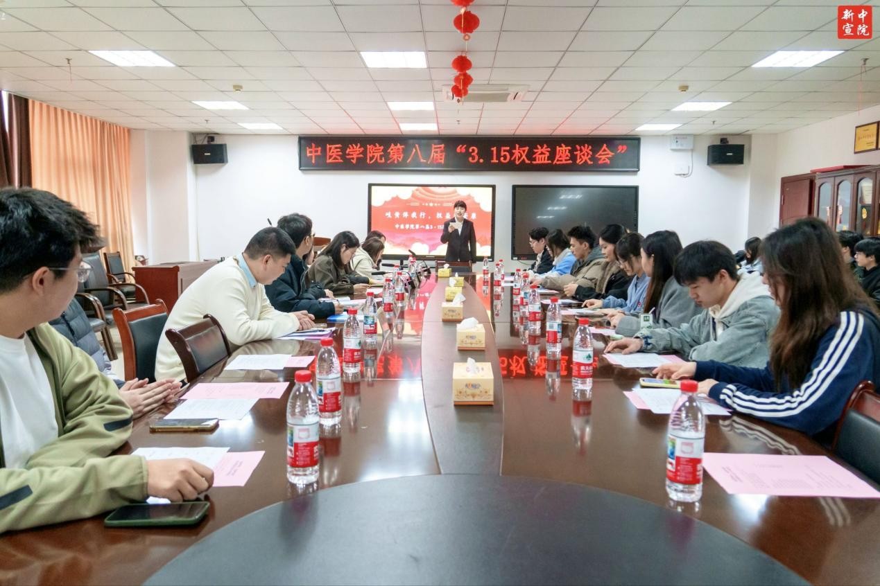 2026年3月26日,湖南中医药大学中医学院在济世楼1406会议室顺利举办第八届“岐黄伴我行,权益护安康”3·15权益座谈会。出席本次会议的领导和嘉宾有中医学院学生科科长彭烨、中医学院团委书记姚绚、中医学院学生科副科长戴玉微、中医学院学生科辅导员老师代表以及中医学院各班学生代表。