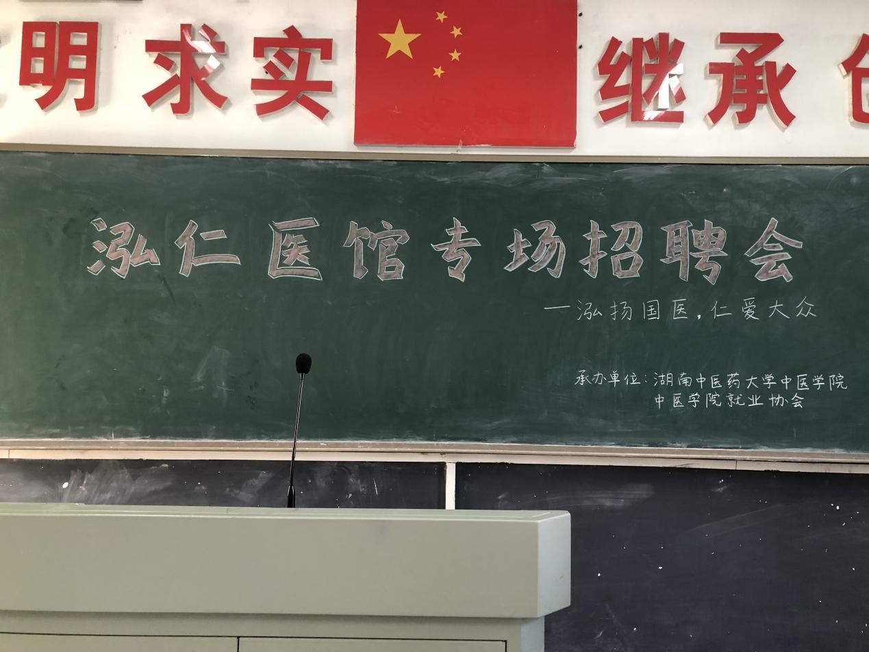 2018年11月24日下午,湖南中医药大学中医学院于湖南中医药大学东塘校区教学楼三楼14教室举办了泓仁医馆专场招聘会,来自中医学院的应届毕业生参加招聘会并投递简历。
