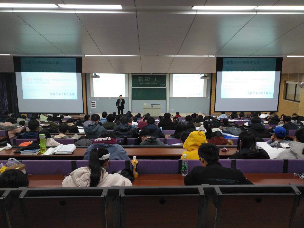 此次讲座的主持人是学生管理科科长贺哲淳,参与讲座的还有中医学院学生周宇老师和张丛一老师。讲座开始之前,贺哲淳科长向参加讲座的中医学院2018、2017、2016级同学介绍了主讲人徐述,通过简要介绍他的个人经历,为同学们塑造了一位榜样。