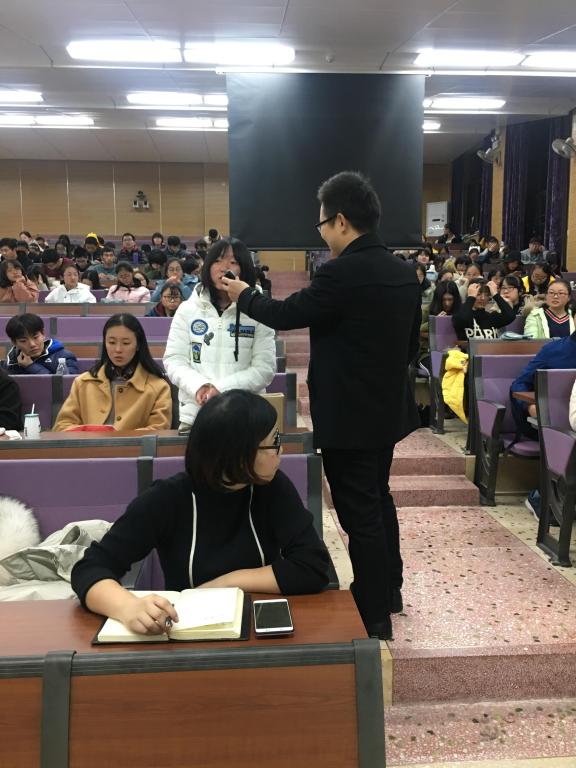 在热烈的鼓掌声中讲座告一段落了,我们期待更多的讲座能拓宽学生的视野,让他们能尽快找准自己的定位,把握时机。