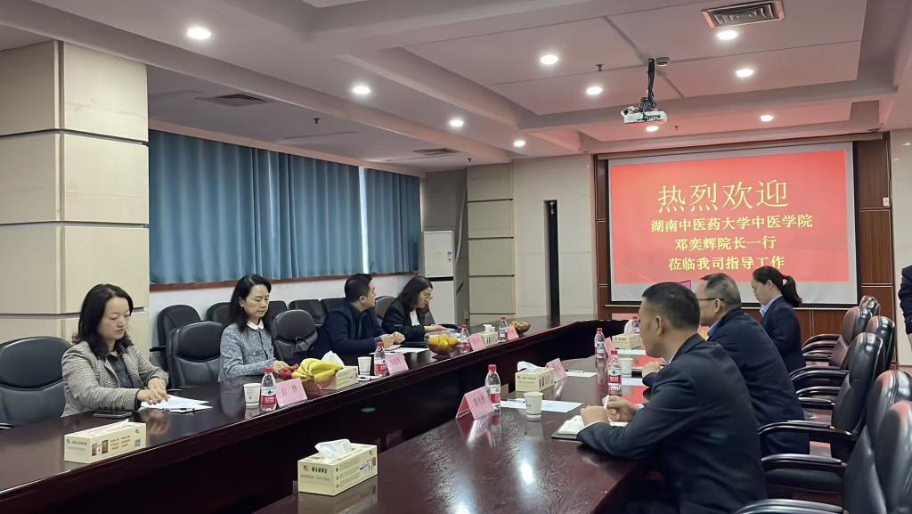 为精准对接医药行业高质量发展人才需求,深化校企协同育人机制,拓宽学生实习就业优质渠道,10 月 30 日,中医学院院长邓奕辉、党委副书记贺哲淳带队,学生科科长彭烨、副科长戴玉微一行赴湖南新汇制药股份有限公司开展访企拓岗专项活动,与企业共商合作大计、共绘人才培养蓝图。湖南新汇制药股份有限公司总经理何承东率队热情接待,并主持座谈交流会。